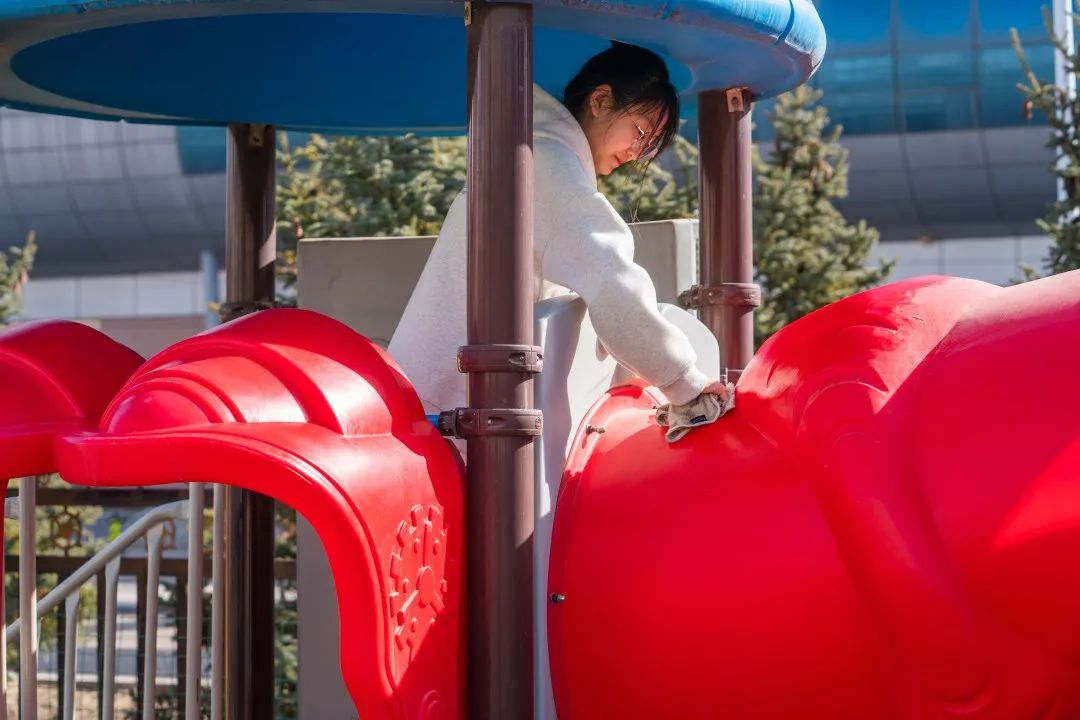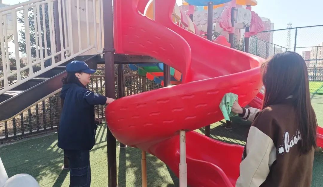 计科青年们主动对幼儿园设施及周边环境卫生进行清理,凭借着自身的点滴劳动,低头俯身、挥洒汗水,用自己的双手带走灰尘与垃圾,为幼儿园增加一份干净与整洁。一上午的劳动虽然很快结束,但是劳动的汗水早已浇灌下了爱与希望的种子。