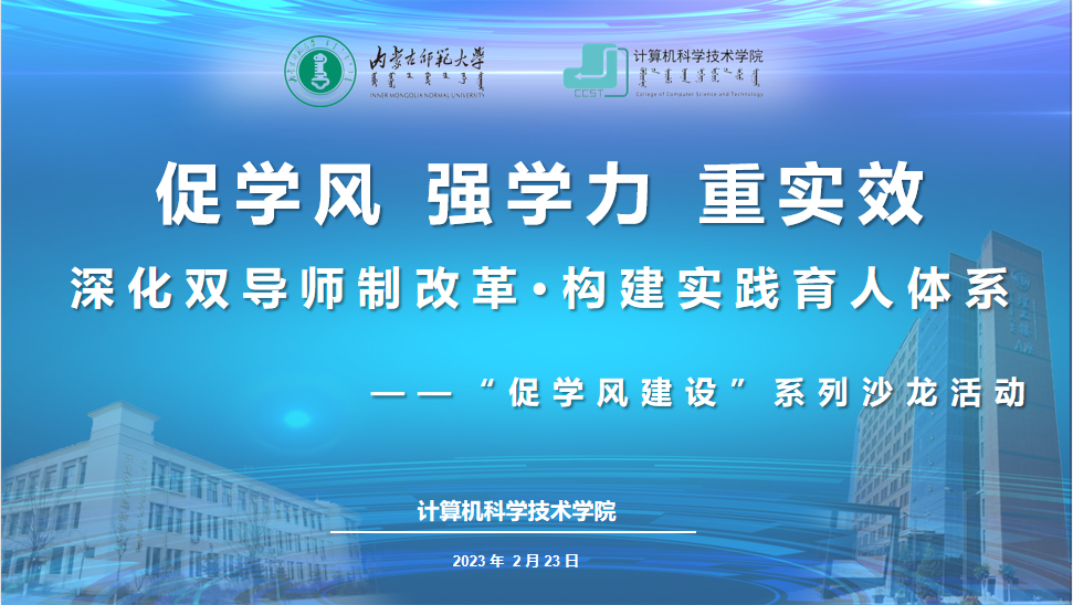 为进一步深化“三全育人”实效,全面推进学院学风建设新格局,2月23日下午在大数据楼青年爱里举办“促学风建设”系列沙龙活动之“深化双导师制改革,构建综合实践育人体系”专题研讨会。学院党委副书记、副院长沙金、副院长斯琴图、各系部、实验室主任、专职辅导员参加活动。