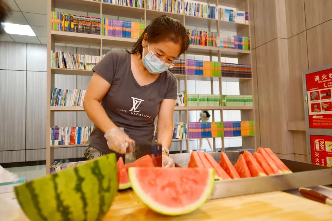 8月2日,PP电子游戏网站购买了2000余斤西瓜,为在校的1076名学生送上解暑神器。学院副院长斯琴图,副院长智敏以及全体辅导员将切好的西瓜“上门配送”到学生公寓和教室,将夏日的清凉带到全体计科青年学生的身边。