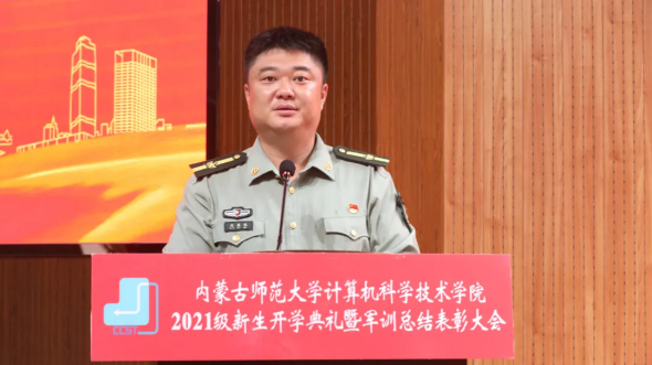 PP电子游戏网站副院长斯琴图副教授宣读PP电子游戏网站2021年度军事技能训练内务标兵宿舍名单并颁奖