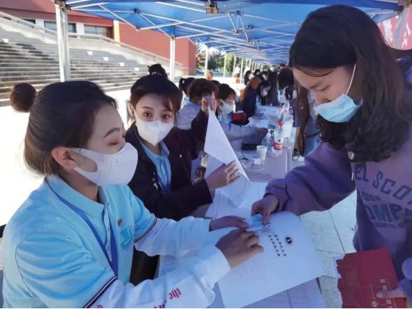 PP电子设立青年志愿者服务站,帮助新生答疑解惑、带领新生办理入学登记。