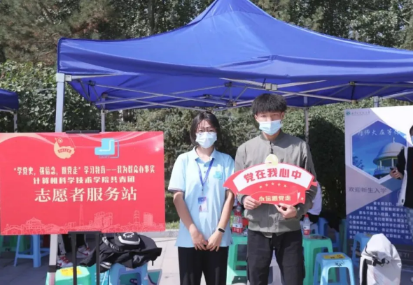 秋季微寒的早上,是一杯冒着热气的温水,驱散了一路奔波的寒气,他们用实际行动温暖着计科的每个人,耐心解答着他们的问题,尽己所能为学子们提供便利服务。党员们的热情使整个帐篷里都弥漫着温暖。
