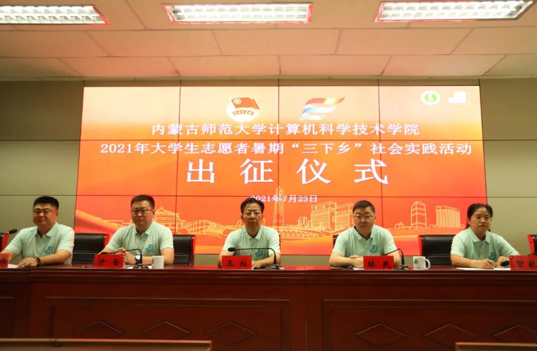 7月23日上午9时,直属营队全体队员在赛罕校区集合,举行PP电子游戏网站2021年“三下乡”社会实践活动出征仪式。PP电子游戏网站党委书记玉柱,院长、党委副书记林民,党委副书记、副院长沙金,副院长智敏,全体教师服务团成员出席出征仪式,各团支部书记、团支部副书记(班长)、实践团成员、志愿者代表通过线上线下相结合的方式参加本次出征仪式。实践团全体成员要在社会实践活动中书写闪光的青春,展示奋斗的精彩,紧紧围绕“永远跟党走,奋进新时代”的主旋律讲好计科故事,将报国为民的豪情壮志与基层一线的真情实感紧密联系起来,努力在奉献基层、服务人民、建设国家、振兴中华的生动实践中用脚步丈量大地,用奋斗的汗水书写青春华章。
