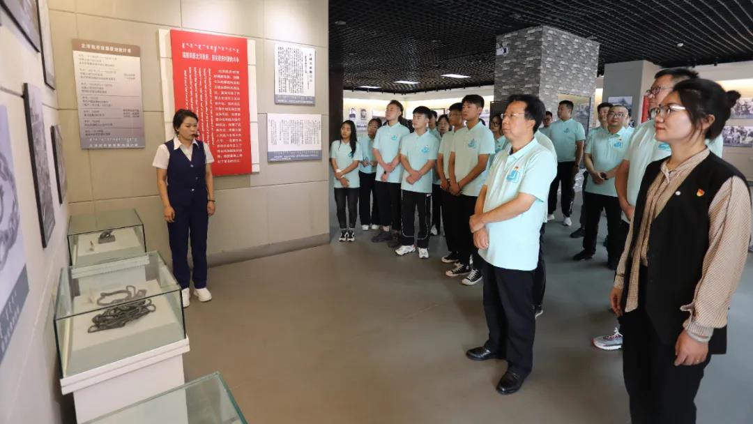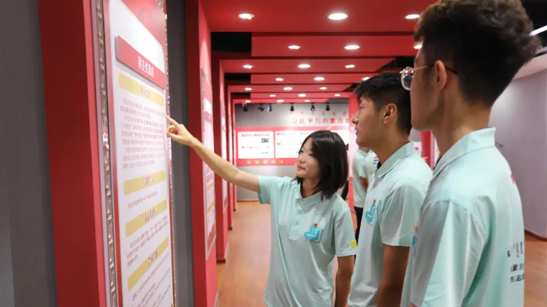 为继续深入开展党史学习教育为重点的“四史”宣传教育工作,国情观察实践团与教师服务团一行在锡林浩特团市委书记辛颖的带领下,前往锡林浩特市红色旅游纪念馆开展主题党、团日活动,观看《锡林郭勒革命史》展览,踏寻红色遗迹,重温革命历史。全体师生党员重温入党、入团誓词、重忆入党、入团初心。随后,实践团一行走进锡林浩特市党群服务中心党性教育展厅、红色影厅,开展一系列内容丰富的党性教育活动。详细了解中国共产党百年奋斗的光辉历程,重温了党的一大到党的十九大精神内涵。