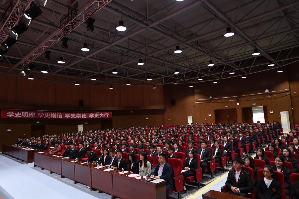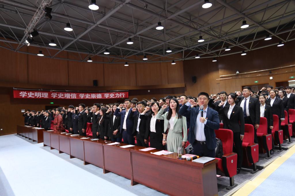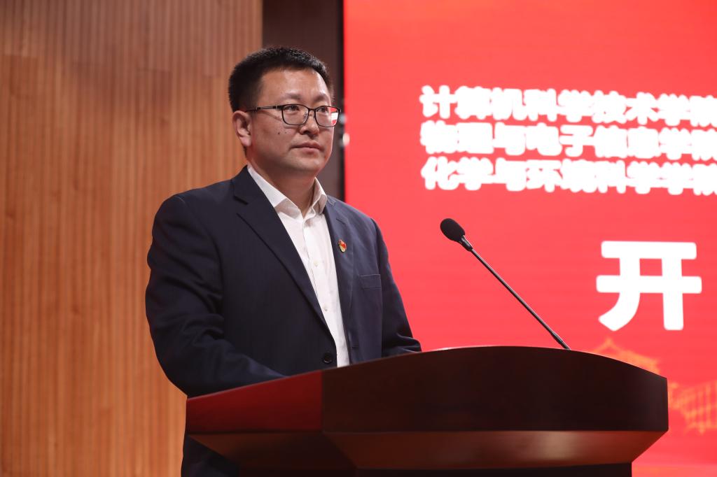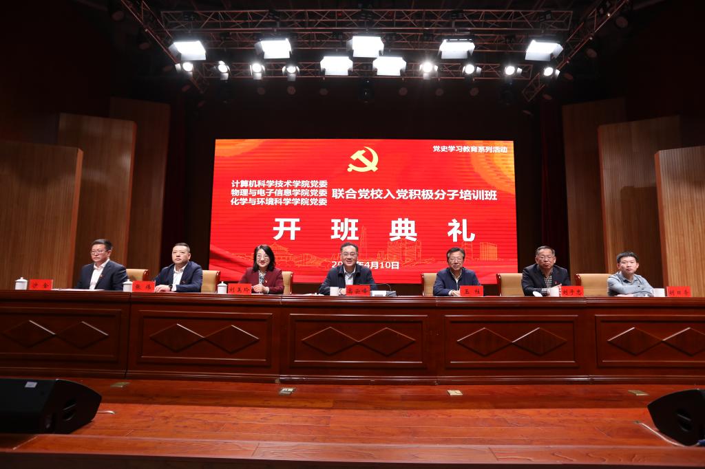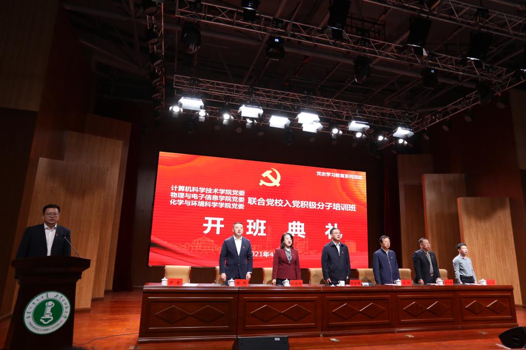 在庆祝中国共产党百年华诞的重大时刻,在“两个一百年”奋斗目标历史交汇的关键节点,全党集中开展党史学习教育之际,2021年4月10日,PP电子游戏网站党委、物理与电子信息学院党委、化学与环境科学学院党委在盛乐校区图书馆二楼报告厅联合举办2021年入党积极分子培训班开班典礼。
