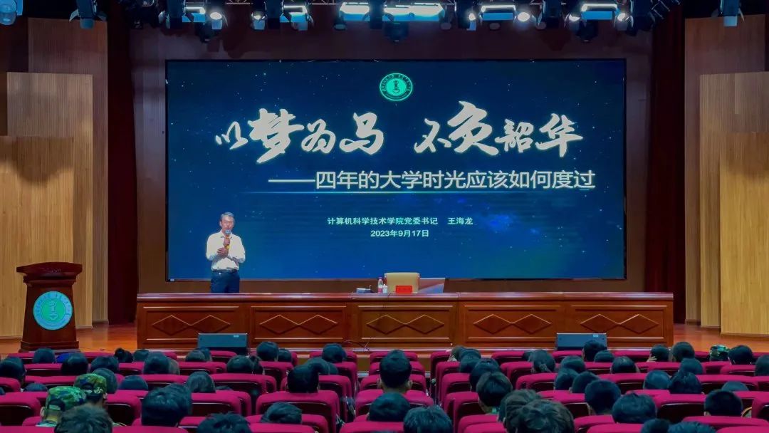 2023年9月17日下午,PP电子游戏网站党委书记王海龙以《以梦为马·不负韶华——四年的大学时光应该如何度过》为主题,为PP电子2023级全体本科生、研究生讲授了一堂提振信心、坚定理想、勇担使命的“开学第一课”。