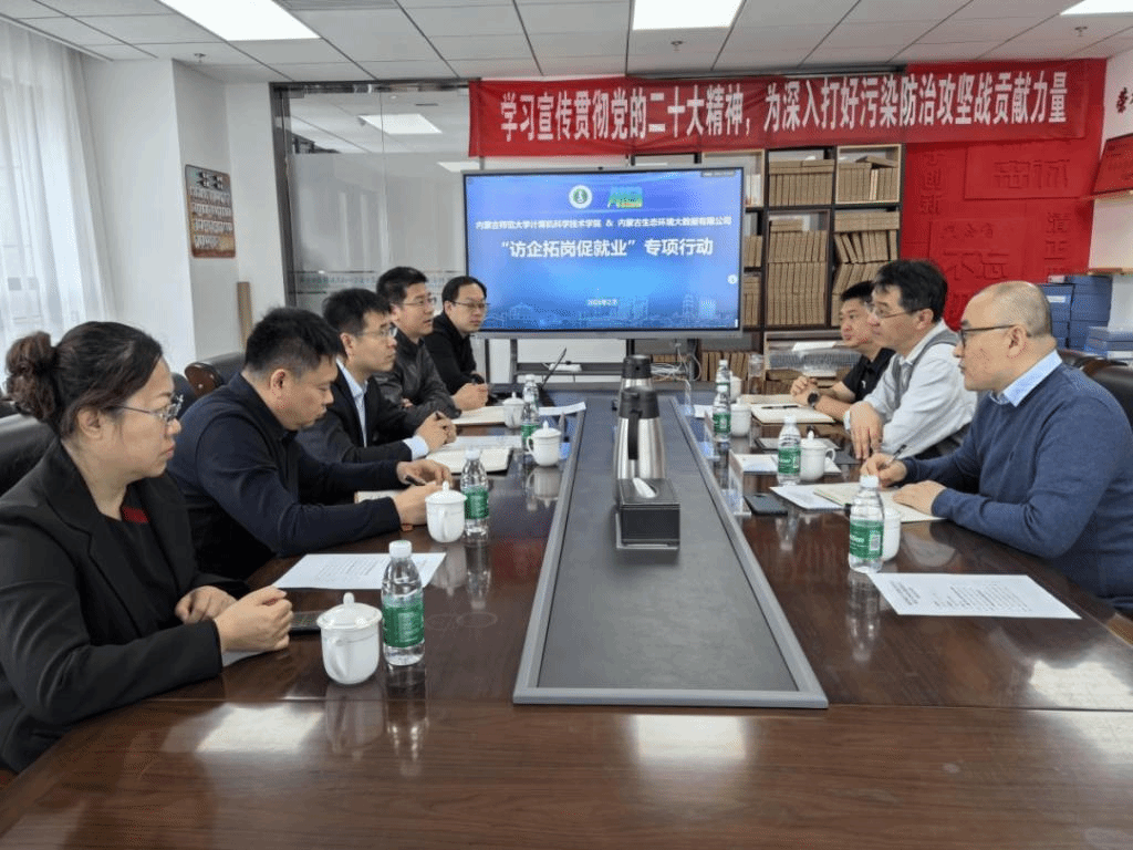 为贯彻党中央、国务院、教育部关于高校毕业生就业工作的决策部署,进一步深化校企合作、推进产教融合,2月21日上午PP电子游戏网站党委副书记、院长王海龙带队,赴内蒙古环保投资集团全资子公司内蒙古生态环境大数据有限公司开展“访企拓岗促就业”专项行动,开拓就业岗位,抢抓春季招聘关键期,多措并举助力毕业生高质量充分就业。