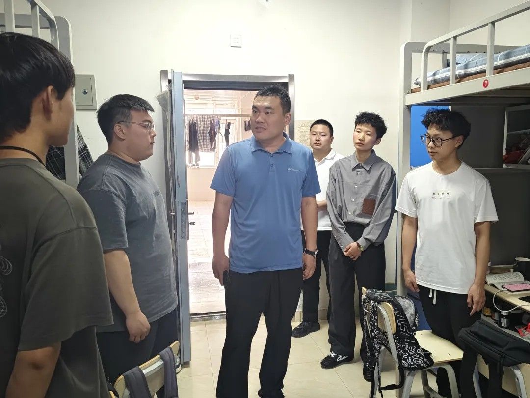 为进一步了解学生思想动态、生活状态、学习状态,保障学生安全有序地学习生活,5月15日晚,PP电子游戏网站党委书记乌日其木格,副院长贾阳带领全体辅导员深入学生公寓,走访、排查公寓安全隐患,并了解学生学习生活状况。