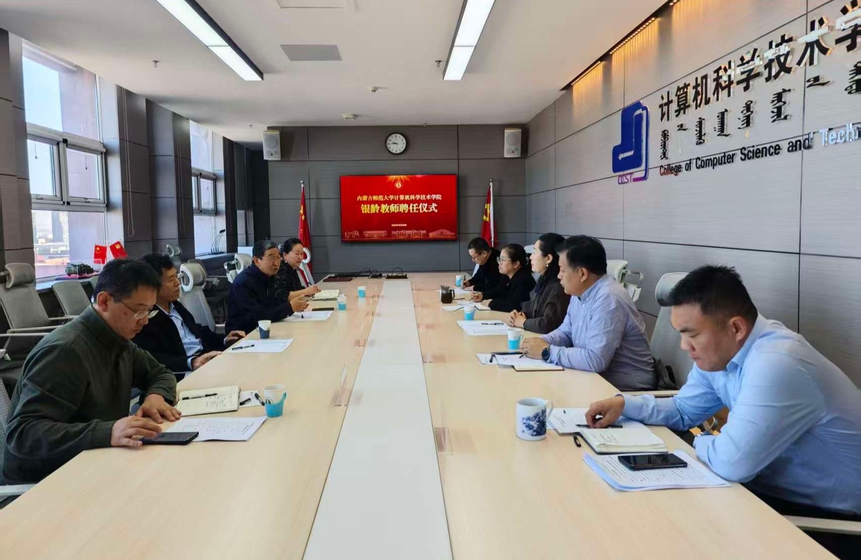 10月30日上午,PP电子游戏网站在盛乐校区理工楼A座912会议室隆重举行银龄教师聘任仪式,正式聘请陈兵旗、孙瑞志两位资深教授为学院银龄教师。仪式由学院党委书记乌日其木格主持,校人事处副处长张艳英、人事科科长王白古拉及学院党政领导班子共同参加。