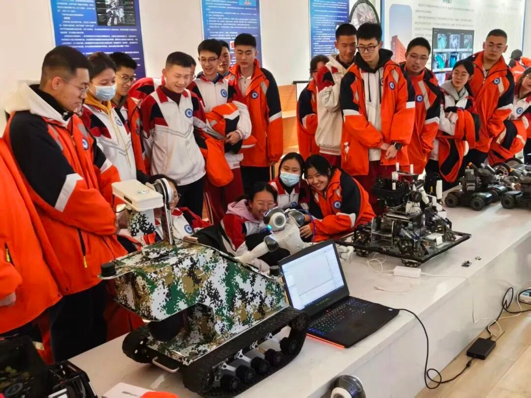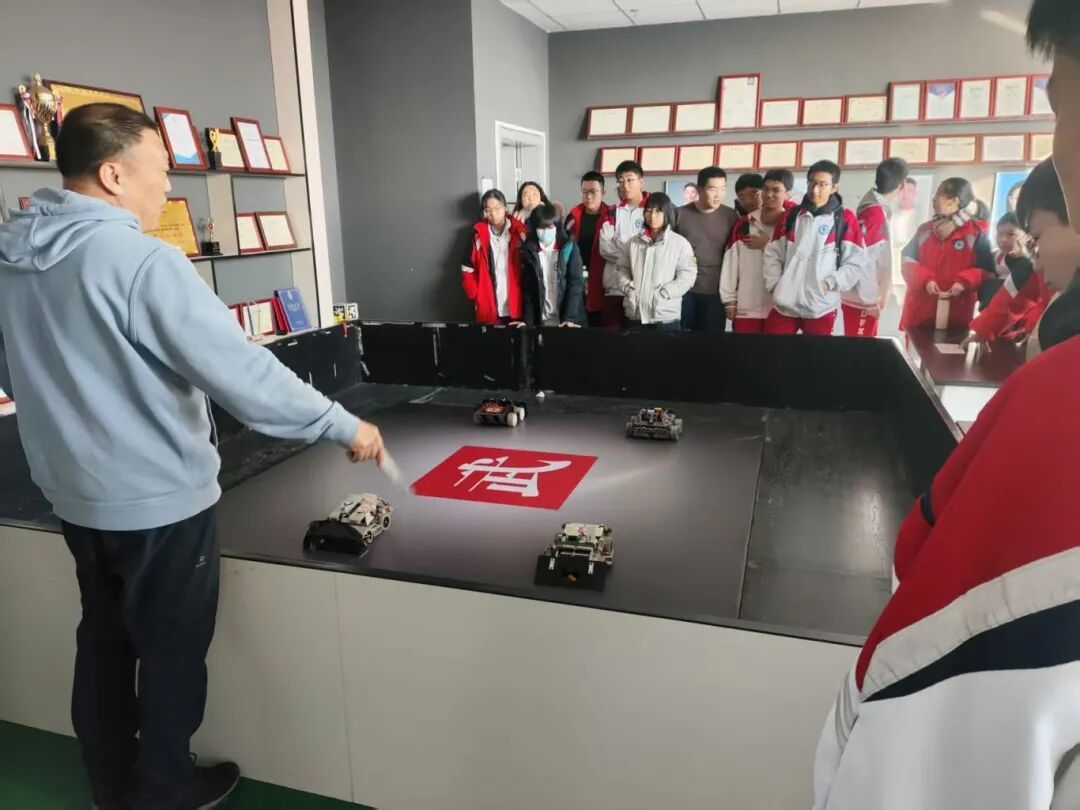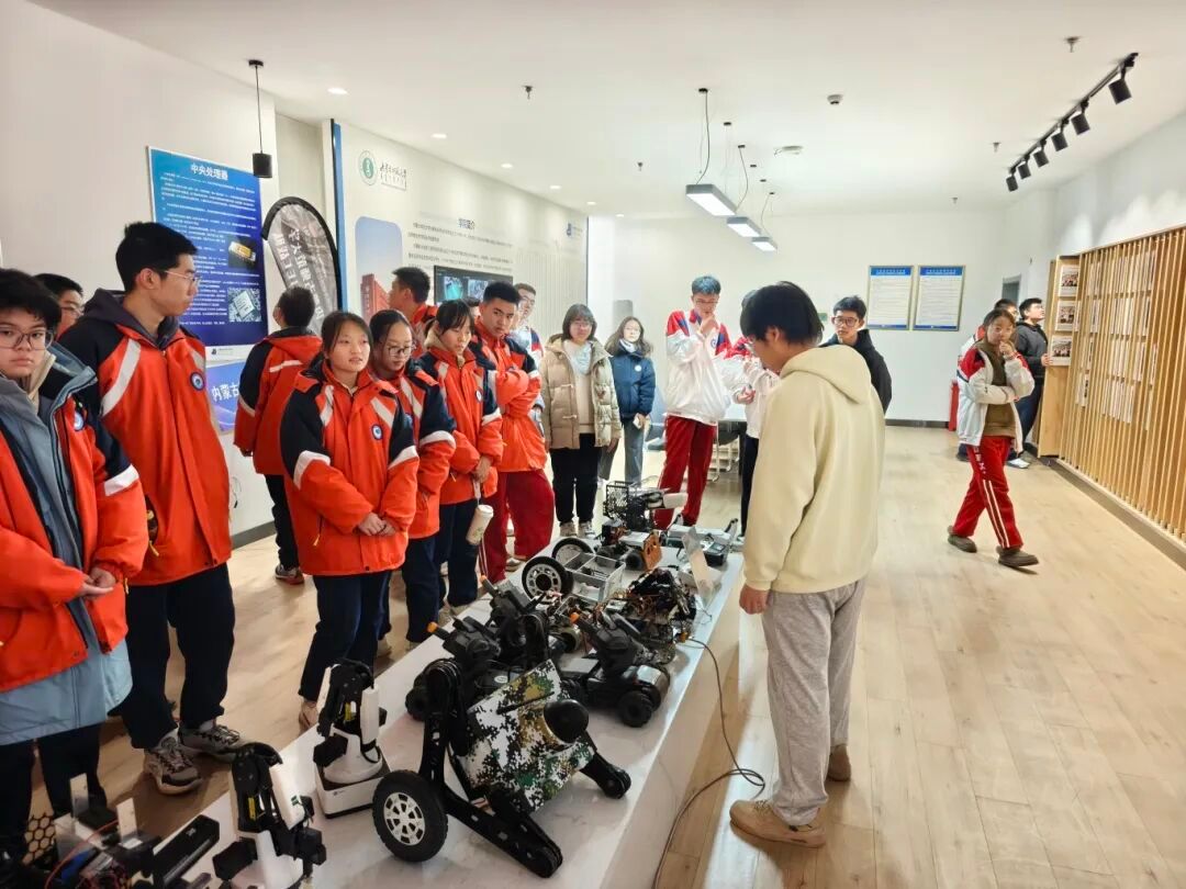 在机器人与人工智能创新中心,师生们近距离考察了PP电子重点建设的双创孵化平台。中心集中展示了PP电子在多项国家级机器人赛事中获奖的自主研发成果,包括视觉机器人、轮腿机器人、平衡车、自适应机械臂等智能系统。现场演示了机器人在自主导航、动态抓取等方面的先进功能,研发团队鼓励高中生积极参与全国青少年机器人竞赛等相关赛事,在实践中锻炼创新能力。