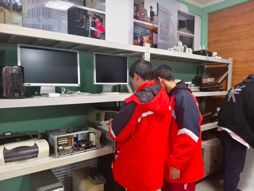 活动中,同学们分别参观了PP电子信息技术史馆与机器人与人工智能创新中心。信息技术史馆内陈列涵盖网络通信设备、超级微型机、高性能计算集群、服务器、老式个人计算机、笔记本和工作站、计算机主要配件,全面展现了信息技术从萌芽到蓬勃发展的历程。实验中心教师生动详实的解说,使同学们对信息技术波澜壮阔的发展史有了直观而深刻的认识,在亲身感受各阶段实物展品的过程中,进一步激发了创新热情与探索欲望。