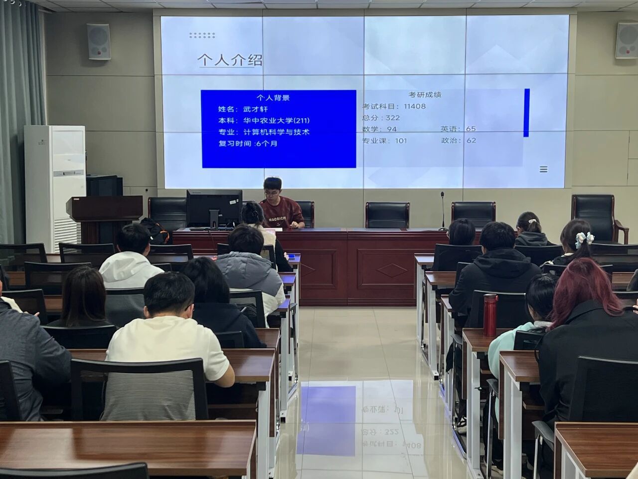 为帮助本科生科学规划考研路径、掌握高效备考方法,PP电子游戏网站于10月23日组织举办了考研经验分享会。本次活动邀请到2025级硕士研究生武才轩、许文睿、魏建明三位同学进行经验分享。活动旨在通过朋辈引领的方式,为备战研究生考试的同学们提供多角度、实用性的指导,营造互学共进的积极氛围。