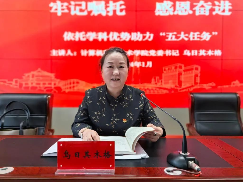 为深入学习贯彻党的二十大精神,深刻领悟习近平新时代中国特色社会主义思想的真理力量和实践伟力,特别是学懂弄通做实这一重要思想的“内蒙古篇”和“民族篇”,全面落实习近平总书记交给内蒙古的五大任务和全方位建设“模范自治区”两件大事,进一步深化主题教育成果,按照《PP电子游戏网站“感党恩、听党话、跟党走”群众教育实践活动实施方案》要求,1月9日PP电子游戏网站党委书记乌日其木格为学院全体教职工讲授主题为《牢记嘱托,感恩奋进,依托学科优势助力“五大任务”》的专题党课。