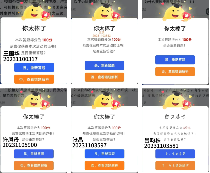 此次“全国大学生国家安全知识答题”活动的成功开展,不仅提高了PP电子学生的国家安全素养,也使我们对国家安全有了更加深入的认识。PP电子将继续深化国家安全教育,通过开展更多形式多样的活动,引导学生树立正确的国家安全观念,为维护国家安全贡献青春力量。