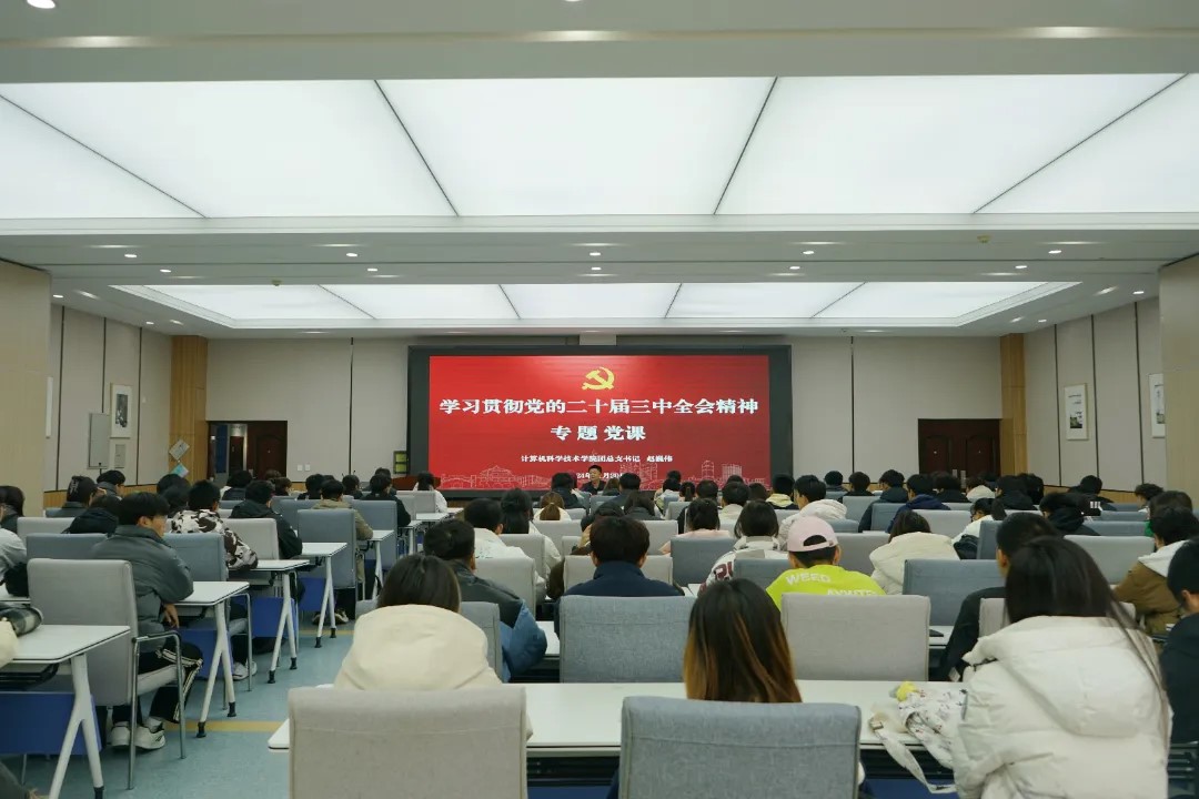 为深入学习贯彻党的二十届三中全会精神,进一步凝聚思想共识,激发奋进力量,推动党的二十届三中全会精神见行见效。11月21日,四个学生党支部联合开展学习贯彻党的二十届三中全会精神专题党课。PP电子游戏网站党委委员、团总支书记赵巍伟以《学深悟透党的二十届三中全会精神》为题,结合党建带团机制、思想政治教育工作和学院共青团工作实际,讲授专题党课,学生党员和学生骨干聆听党课。