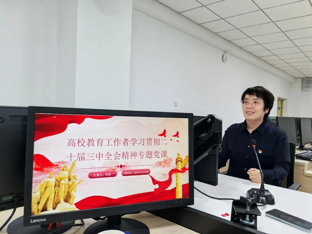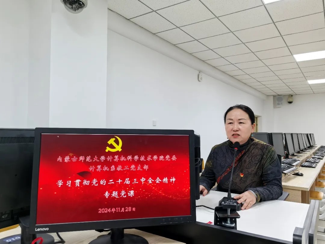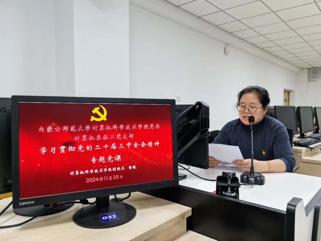 随后,计算机系教工党支部支部书记苟燕以《高校教育工作者学习贯彻二十届三中全会精神专题党课》为题,深入解读了党的二十届三中全会的重要内涵以及其对高校教育工作者提出的新要求、新方向,强调了高校教育工作者在新时代背景下的责任和使命,结合计算机系的实际教学与科研情况,帮助党员教师们更好地理解如何将全会精神贯彻落实到日常工作的方方面面,为后续工作的开展奠定了坚实的理论基础。